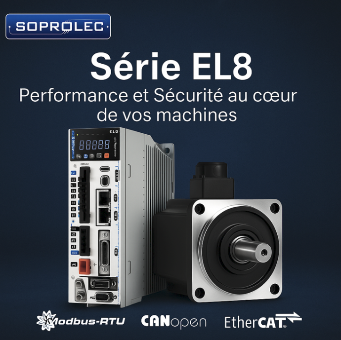 Dans un environnement industriel où la précision, la rapidité et la connectivité sont devenues des critères essentiels, la série EL8 s’impose comme une solution incontournable pour les professionnels de l’automatisation. Conçue pour offrir une performance de haut niveau, une intégration simplifiée et une sécurité maximale, cette gamme de servovariateurs distribuée par SOPROLEC incarne une nouvelle ère dans le contrôle de mouvement.