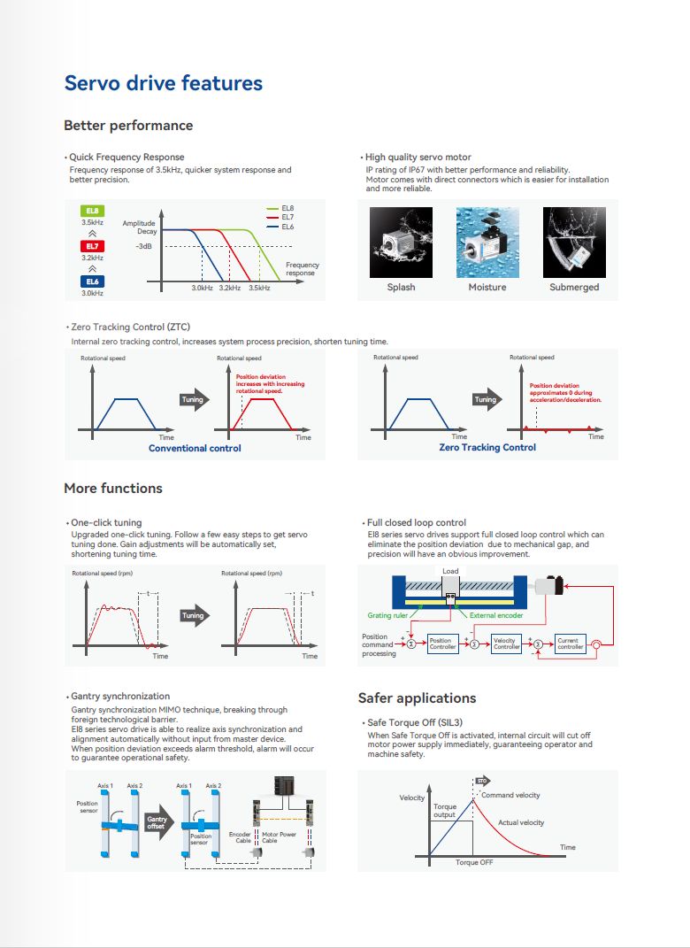 La série EL8 se distingue également par une série de fonctions servo intelligentes qui améliorent la précision, la rapidité et la sécurité du système.